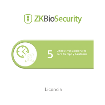 Licencia de software ZKBSTA5 de ZKTECO permite la administración de hasta 5 dispositivos de asistencia. Compatible con INBIOPRO, INBIO, APX y biométricos. Ofrece gestión centralizada de múltiples dispositivos y optimiza el control de horarios, facilitando la administración de asistencia de empleados.